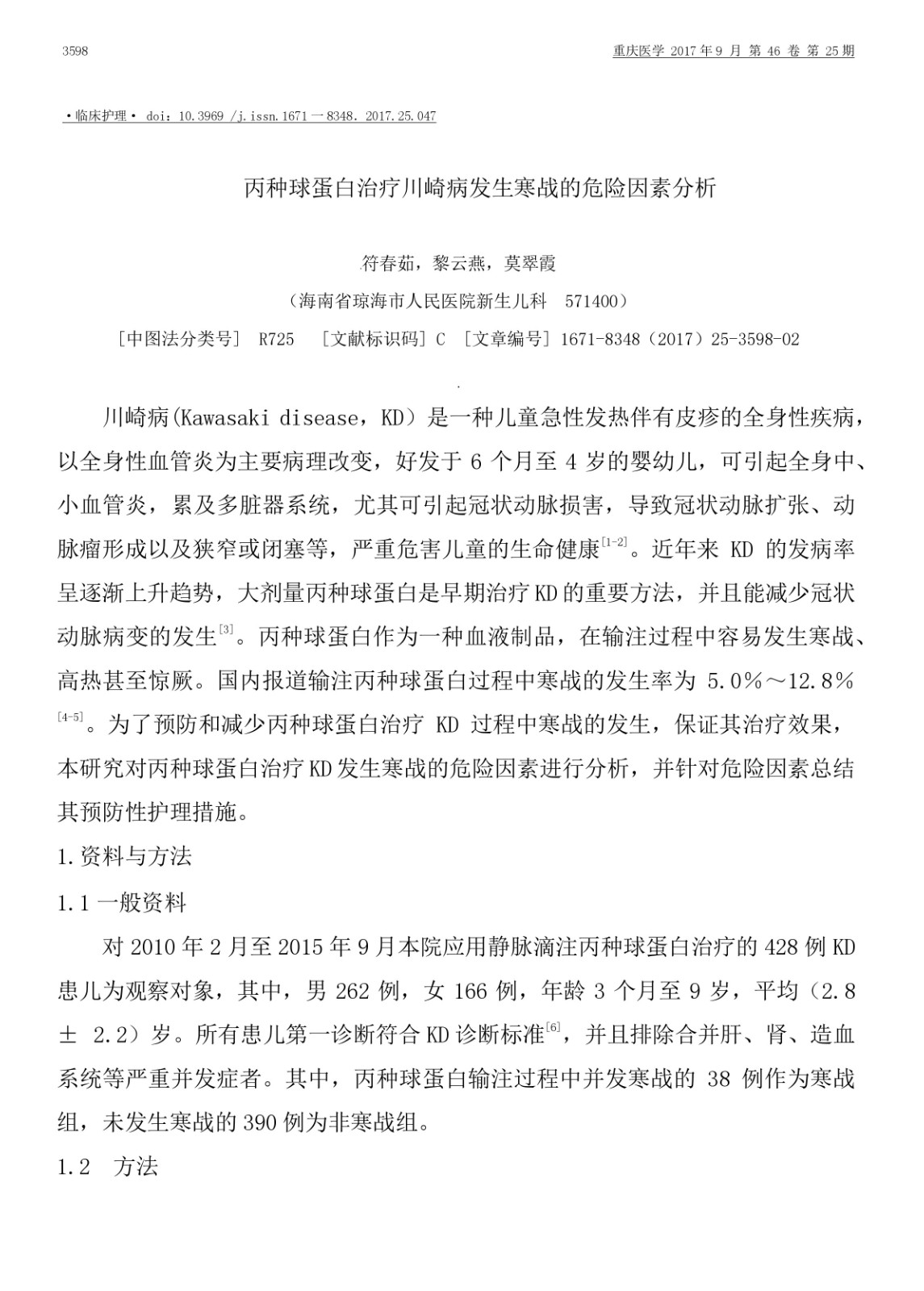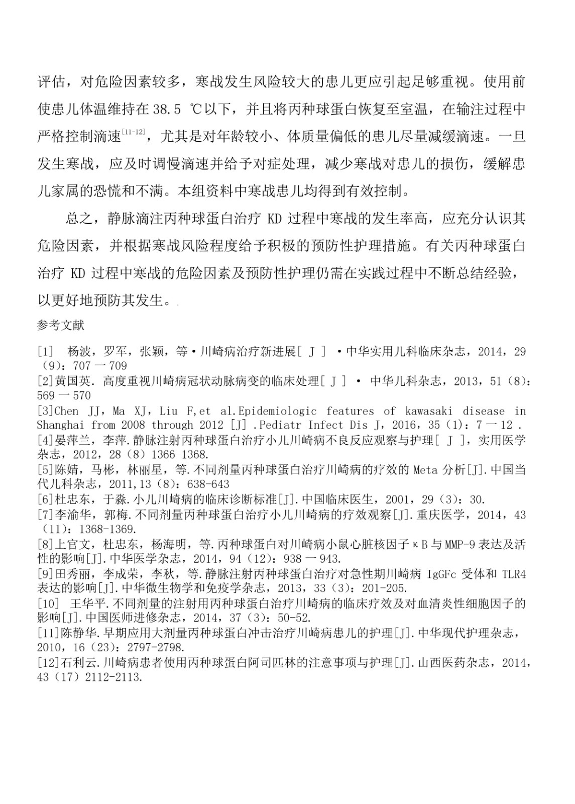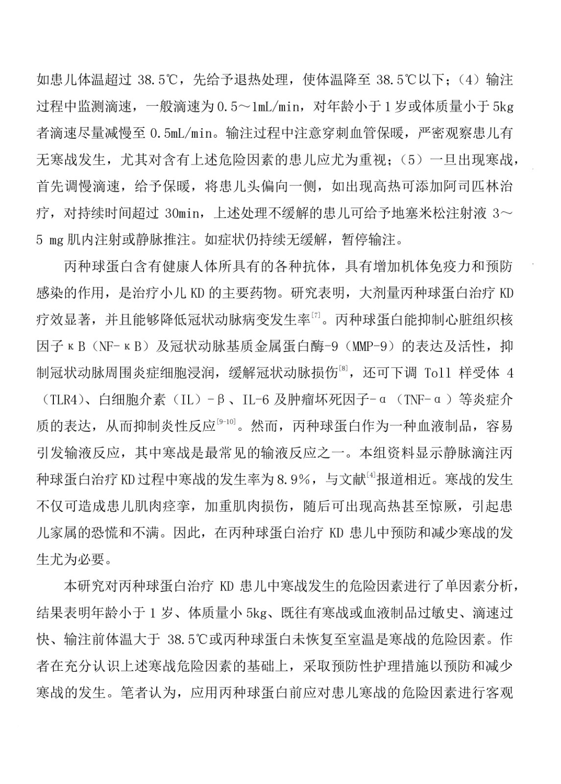 丙种球卵白治疗川崎病爆发寒战的危险因素剖析